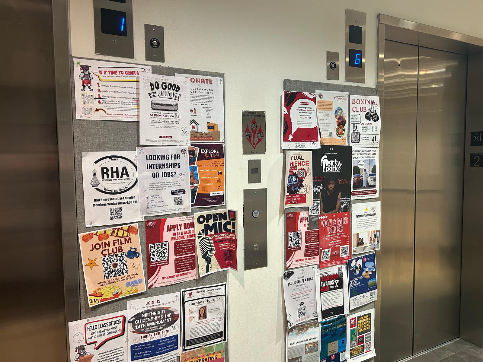 As a student who lives on campus, I catch myself staring at the many flyers when I wait for the elevator to come down to the first floor. Like in my dorm, flyers are posted in almost every building. Each flyer advertises a different event or club that is open to students.
